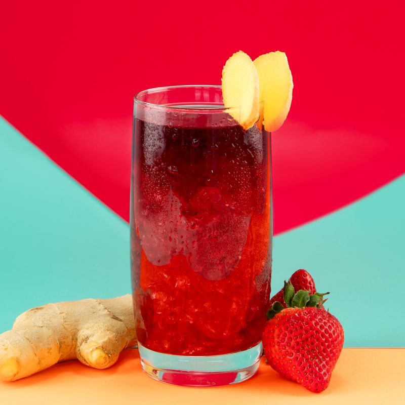 Fruchtige Beeren, süße Erdbeere und spritziges Ginger Ale vereinen sich zu einem prickelnden Sommerdrink voller Leichtigkeit und Glanz. Ein lebendiger Genuss, der funkelt wie ein Sonnenstrahl im Glas – fruchtig, frisch und einfach unwiderstehlich.