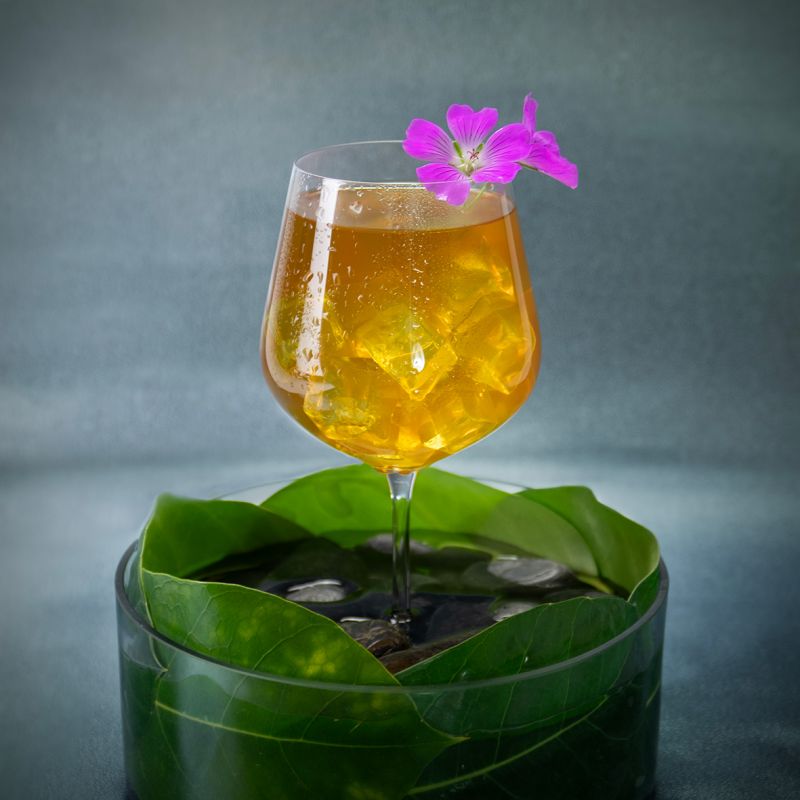 Belebender Kräutertee, spritzige Zitrusnoten und prickelndes Tonic vereinen sich zu einem erfrischenden Drink mit klarer Linie und feinem Bitterspiel. Ein moderner Genuss, der belebt und überrascht – herb, frisch und wunderbar ausbalanciert.