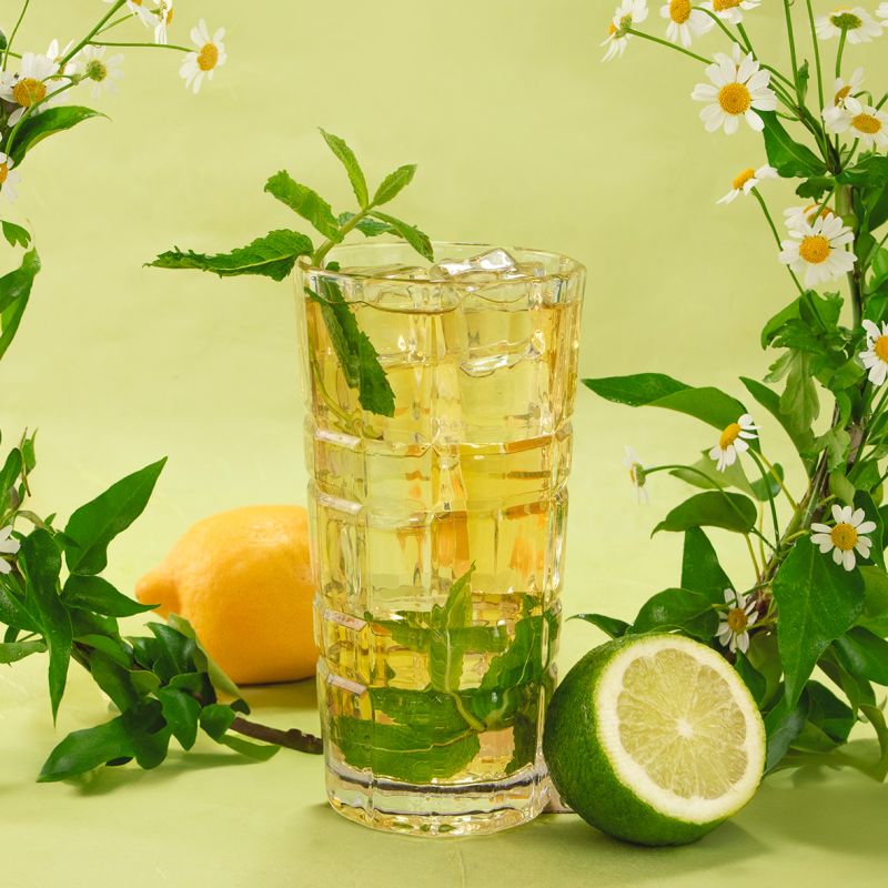 Sanfte Kamille und spritzige Zitrusnoten ergeben einen erfrischenden Eistee, der an blühende Gärten und laue Sommertage erinnert. Ein klarer Genuss – beruhigend, belebend und natürlich anders.